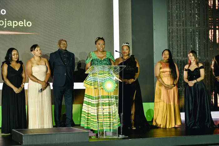 bpSA CEO Taelo Mojapelo (centre on podium) flanked by her bpSA Leadership Team at the bi-annual conference earlier this month.