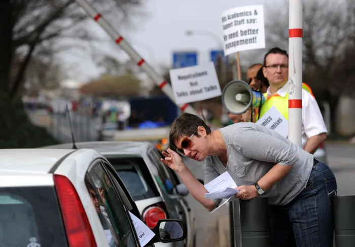 Soliciting people for support. Wits academic staff protest about salaries outside the North Gate of the Yale Road entrance. 280812. picture: Chris Collingridge 736 Soliciting people for support. Wits academic staff protest about salaries outside the North Gate of the Yale Road entrance. 280812. picture: Chris Collingridge 736