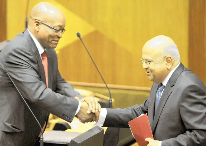 FILE: -National Minister of Finance Pravin Gordhan is congratulated by President Jacob Zuma after delivering his Budget Speech in the National Assembly. Picture Jeffrey Abrahams FILE: -National Minister of Finance Pravin Gordhan is congratulated by President Jacob Zuma after delivering his Budget Speech in the National Assembly. Picture Jeffrey Abrahams