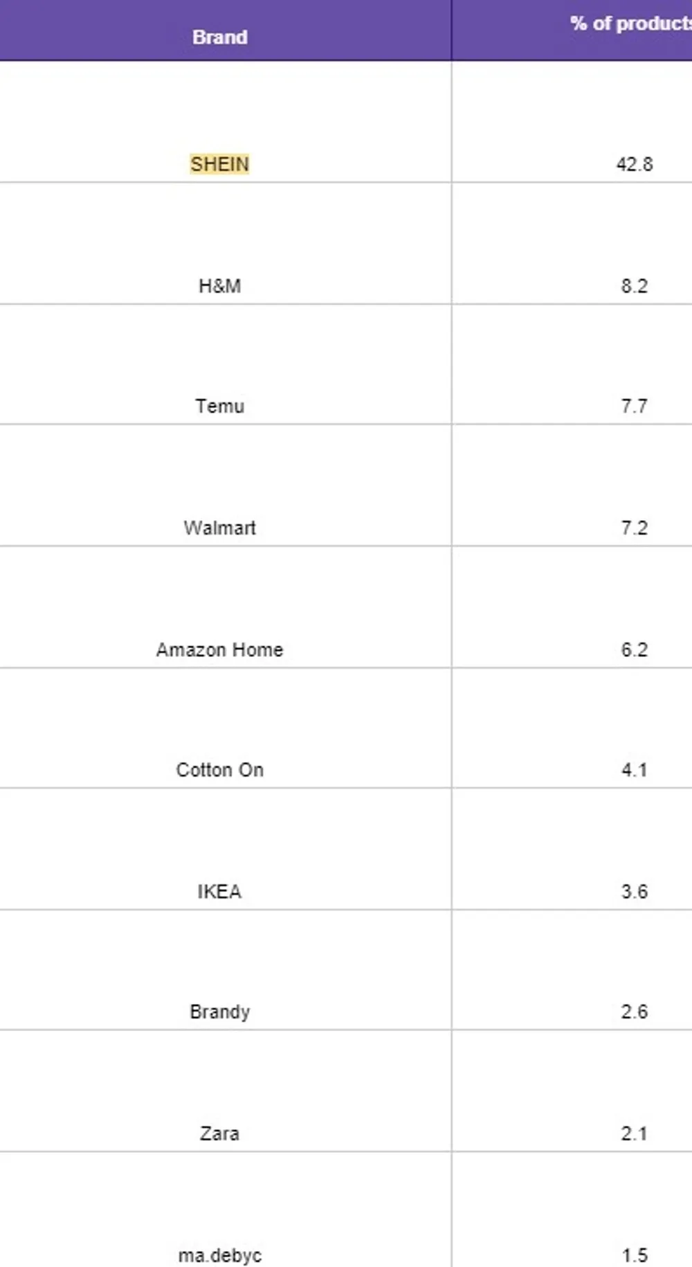 Temu was found to be the second most popular retailer, with 17.5% of items, while Amazon Home featured third at 12.5%.