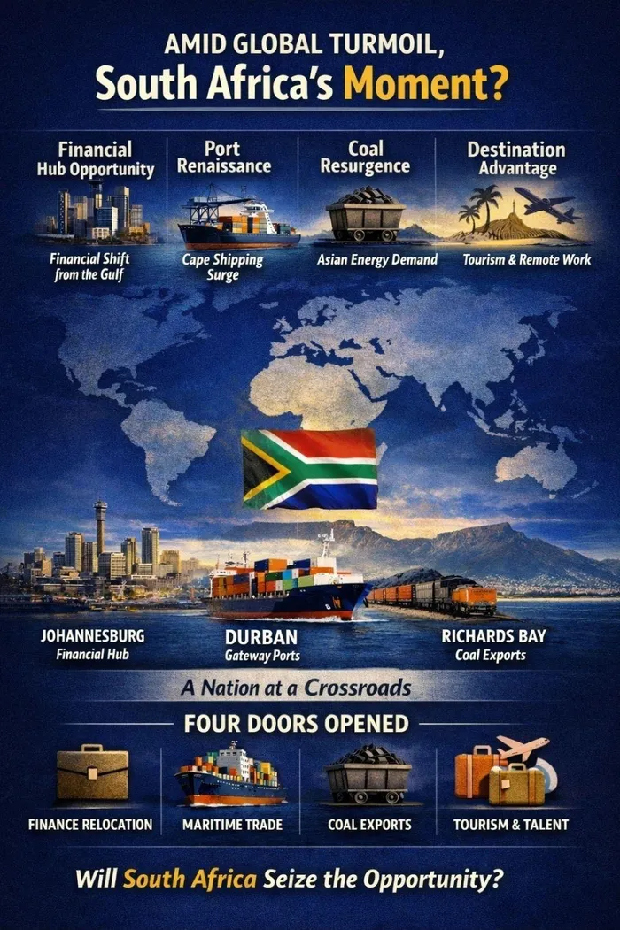Because moments like this do not last indefinitely. Capital settles. Trade routes stabilise. Talent finds new homes. The window is open now. The only question is whether South Africa will move fast enough — and boldly enough — to step through it.
