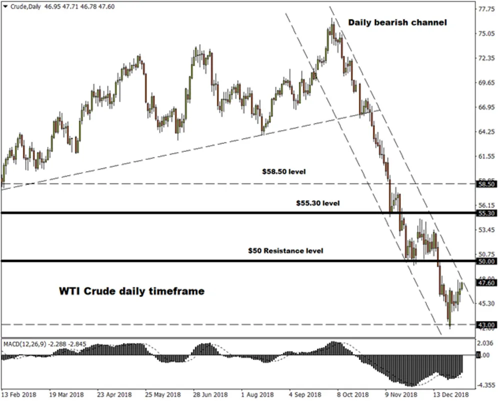 Other forces seen influencing Oil prices during the first quarter will include the dollar’s performance and sporadic Tweets from US president Donald Trump. A weaker dollar amid speculation of the Fed taking a pause on rate hikes will be a welcome development for Oil prices because the commodity is denominated in dollars.