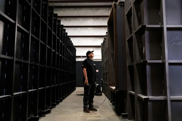 In Hubbard's factory yard, about twenty bunkers that look like steel shipping containers stood ready to be shipped to clients across the country. Another 40 orders were in production.
