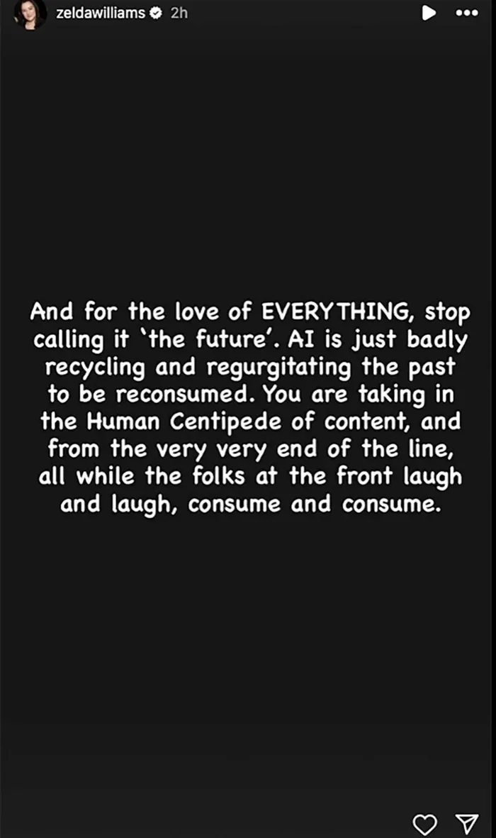 She continued, "To watch the legacies of real people be condensed down to ‘this vaguely looks and sounds like them, so that’s enough,’ just so other people can churn out horrible TikTok slop puppeteering them is maddening."