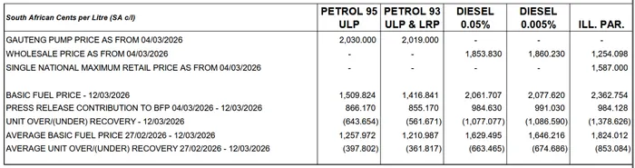 Keep in mind that an increase in fuel taxes is also expected to take effect from April 1, with increases to the General Fuel Levy, Carbon Levy and Road Accident Fund levy collectively adding 21 cents to the tally.